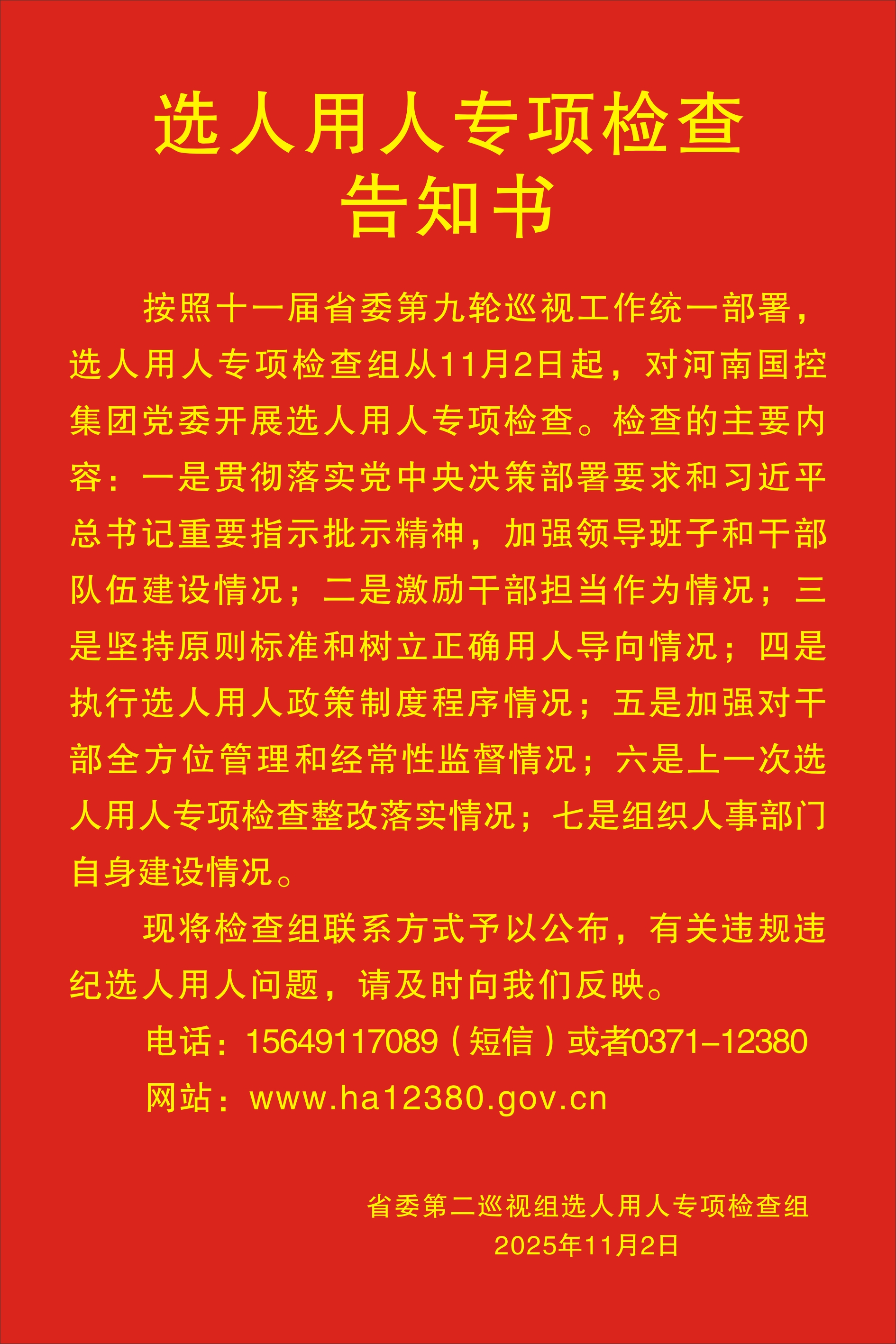 选人用人专项检查告知书